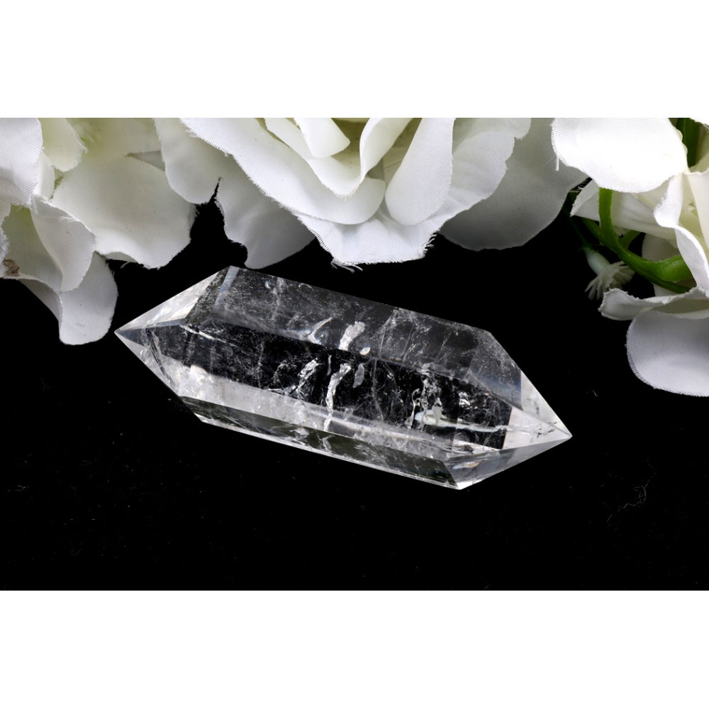 Tento nádherný dvojitý hrot křišťálu se pyšní krystalickou průzračností, která v sobě ukrývá fascinující vnitřní svět. Prohlédněte si, jak se světlo láme na ostrých, přirozeně vybroušených plochách obou špiček a jak tančí na vnitřních trhlinách a inkluzích, které tvoří jedinečnou kresbu. V jeho středu můžete pozorovat lehce mléčný pás, jenž dodává kusu hloubku a osobitý charakter.