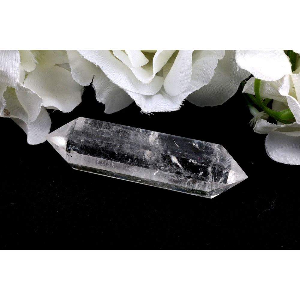 Tento nádherný dvojitý hrot křišťálu se pyšní průzračnou, čistou substancí, která je charakteristická pro tento typ minerálu. Z blízka si všimnete fascinujících vnitřních inkluzí a jemných rýh, které nejsou vadou, nýbrž dokladem jeho přírodního původu a jedinečné historie. Povrch kamene je pečlivě leštěn, avšak zachovává si autentické nepravidelnosti a strukturu, která podtrhuje jeho syrovou krásu. Obě špičky jsou precizně vyvedené, symetricky tvarované a dodávají celému kusu pocit rovnováhy a silné vizuální přitažlivosti. Místy se objevují lehké mléčné závoje, jež křišťálu propůjčují hloubku a nádech mystéria.