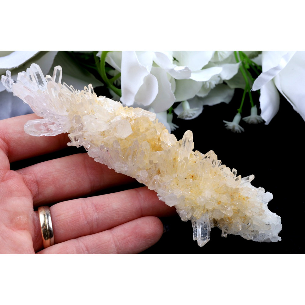 Tato jiskřivá křišťálová drúza se zrodila v majestátních horách provincie Sichuan v Číně, oblasti proslulé svými bohatými nalezišti drahokamů a minerálů. Po miliony let zde, hluboko v zemských žilách, krystaly pomalu rostly a formovaly se pod nesmírným tlakem a teplem, nasávající sílu prastaré Země. Každá špička a ploška tohoto přírodního minerálu vypráví příběh o geologických proměnách a nekonečné trpělivosti přírody. Z drsných horských svahů se tento ručně vybraný originální kus vydal na dlouhou cestu, aby nyní mohl prozážit a obohatit váš domov svou nefalšovanou krásou a energií.