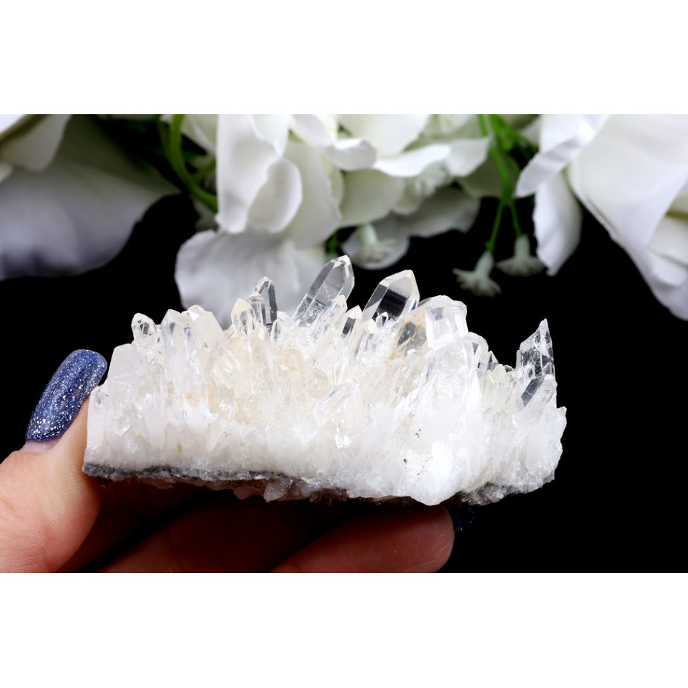 Tato fascinující drúza křišťálu se narodila v mystických horách provincie Sichuan v Číně. Oblast Sichuan je proslulá svými bohatými nalezišti minerálů, kde se geologické síly po tisíciletí podílely na vzniku těchto průzračných krystalů. Představte si, jak hluboko pod povrchem země, v tichu a temnotě, rostly tyto krystaly pomalu a trpělivě, aby se nakonec dostaly na světlo a mohly přinášet svou čistou energii do vašeho domova. Každý krystal v této drúze je svědkem dávných geologických proměn, ztělesňujícím sílu a krásu přírody.