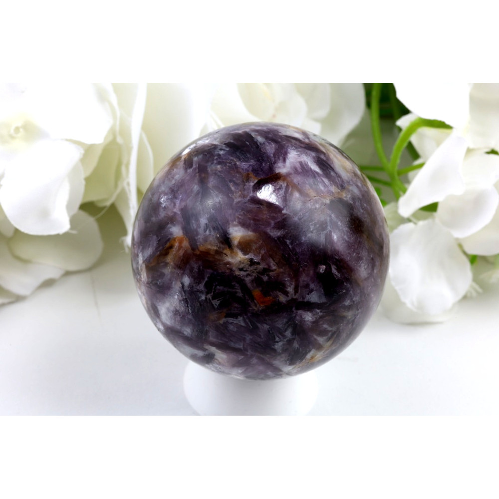 Zklidňující objetí fialových snů: Magická koule z lepidolitu