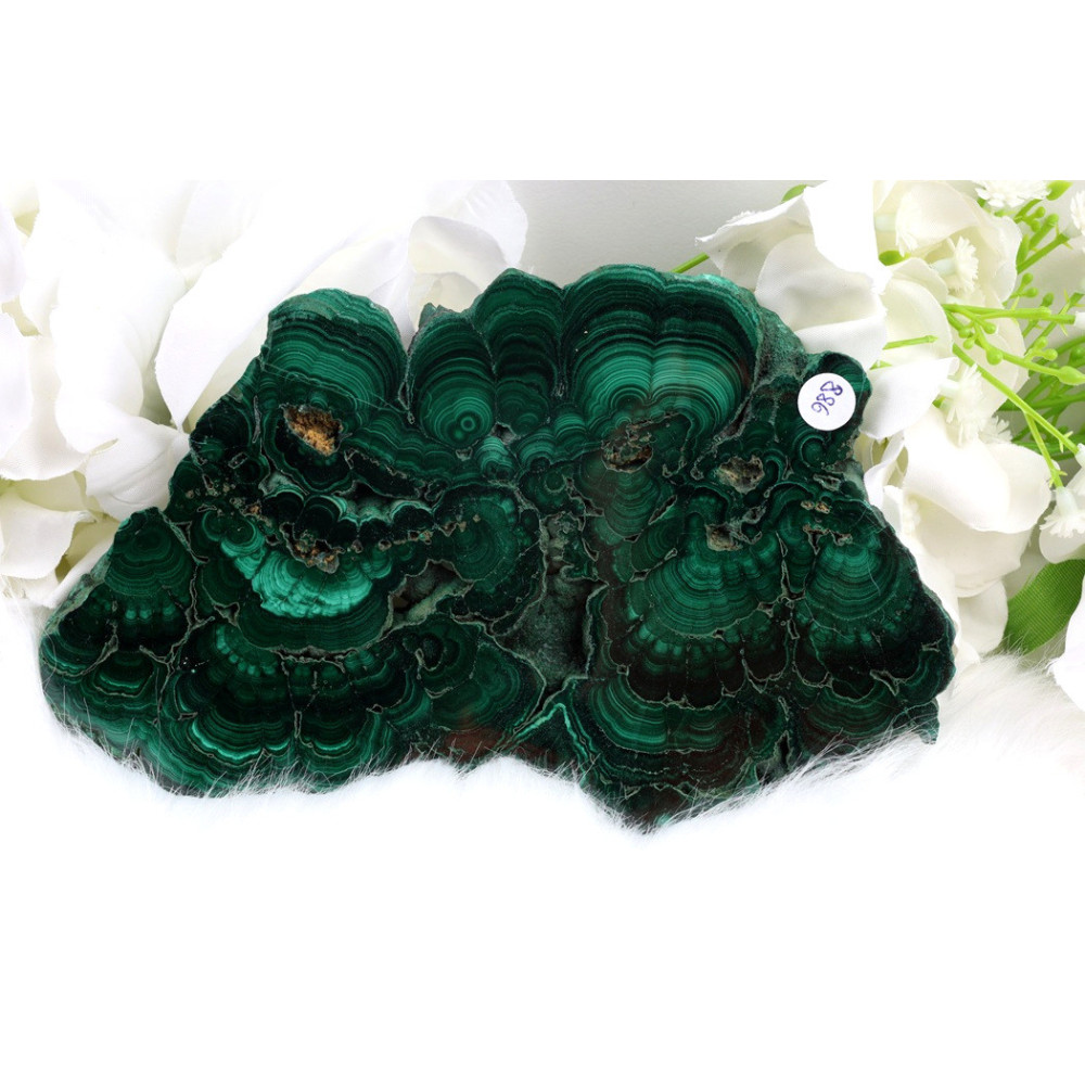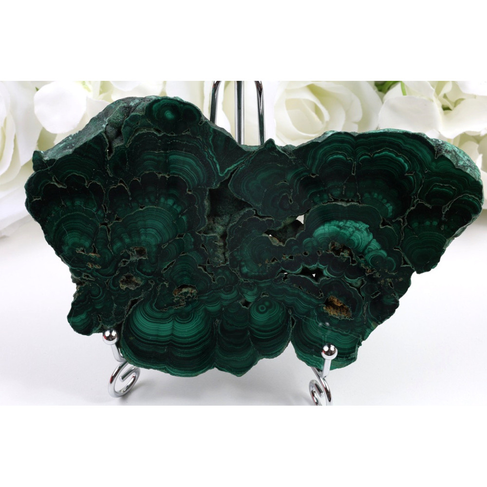 Přidejte do své sbírky tento úchvatný plátek zambijského malachitu! Jeho bohatá zelená kresba a vysoký lesk z něj činí skutečný přírodní klenot, který zaujme každého milovníka minerálů. Tento konkrétní kus s jeho jedinečným vzorováním je originál - čeká právě na vás!