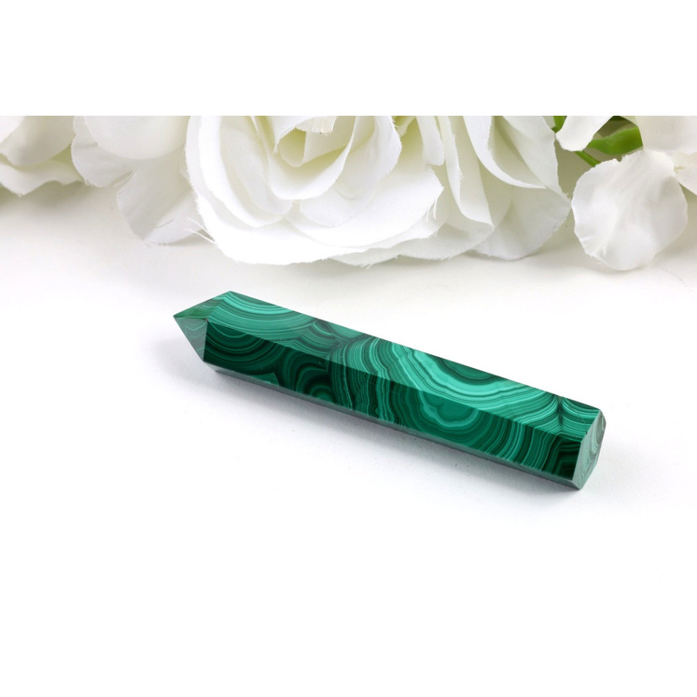 Malachit je vzácný měděný minerál proslulý svými intenzivními zelenými odstíny a charakteristickými pruhovými vzory. V tradičních učeních je ceněn jako kámen transformace, harmonie a ochrany. Jeho energie je spojována s podporou vnitřní rovnováhy, odvahy při životních změnách a ochranou před negativními vlivy. Malachit je oblíbený pro svou schopnost pomáhat v procesu osobního růstu, prohlubování spirituálního vědomí a posilování intuice. V lidových tradicích se věří, že tento kámen přináší klid do mysli, podporuje emocionální vyrovnanost a usnadňuje uvolnění starých vzorců.