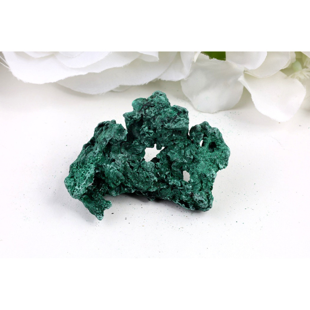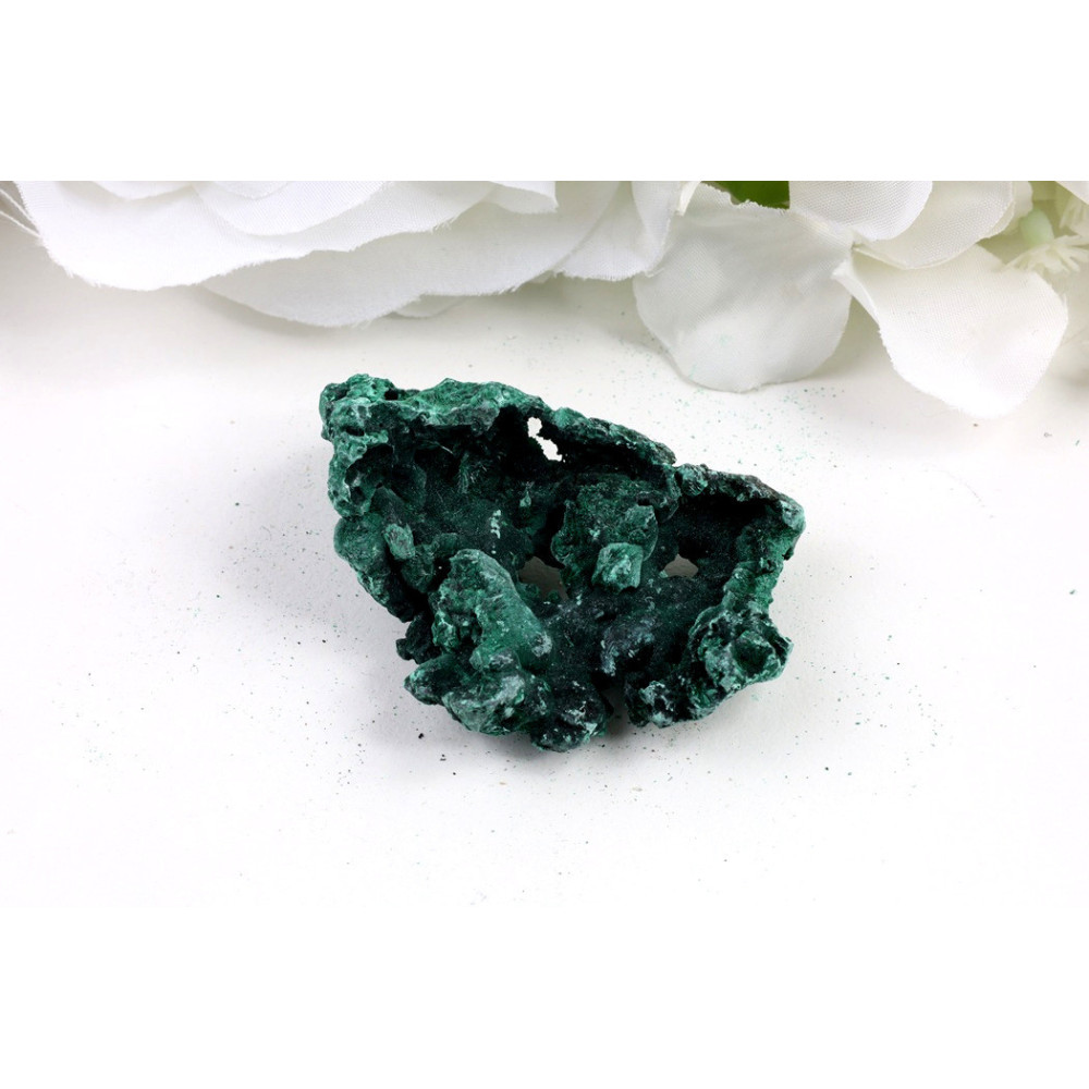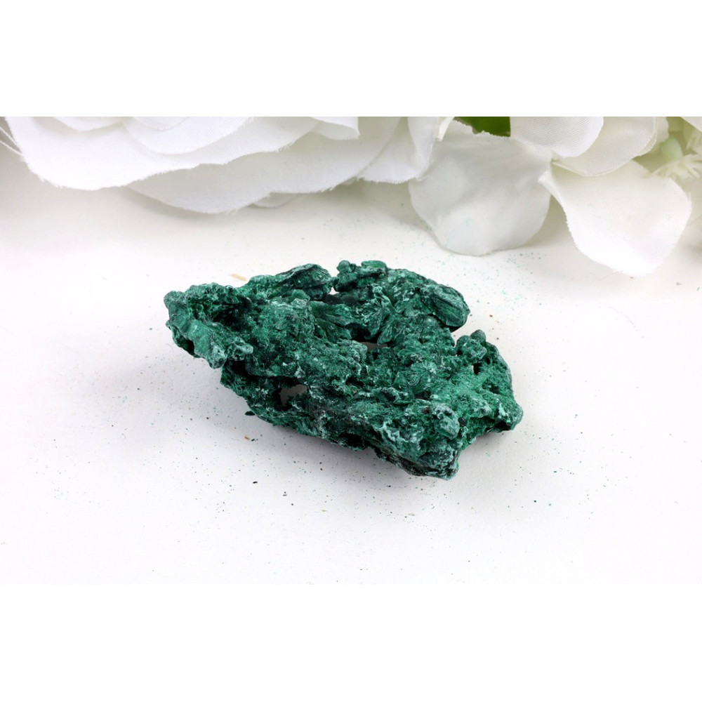Sametový malachit z Konga je ceněný pro svůj výjimečný matný povrch a hluboké zelené tóny. V tradiční praxi je malachit spojován s harmonií, vnitřní rovnováhou a podporou osobního růstu. Tento minerál je oblíbený mezi sběrateli i těmi, kdo hledají kámen pro meditaci a duševní pohodu. Jeho jemná energie může přispívat k pocitu klidu a vyrovnanosti.