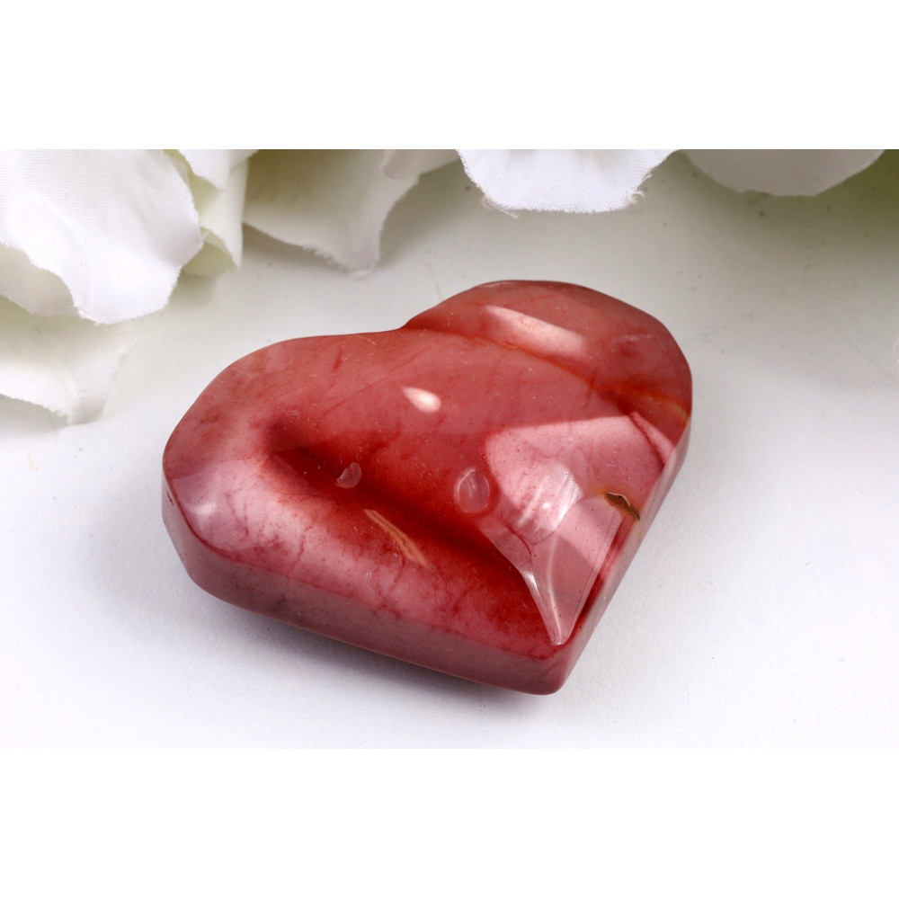 Tento unikátní leštěný mookait ve tvaru srdce přitahuje pozornost svou sytou, cihlově červenou barvou, která se ladně prolíná s jemnými krémovými a světlejšími tóny. Na jeho hladkém povrchu se proplétají proužky a mapy, které vyprávějí příběh o dávných sedimentech. Lesklá úprava kamene krásně odráží světlo a zdůrazňuje bohatou vnitřní kresbu minerálu, kde jsou zřetelné bledší odstíny vytvářející dojem stékajících řek nebo pouštních dun.