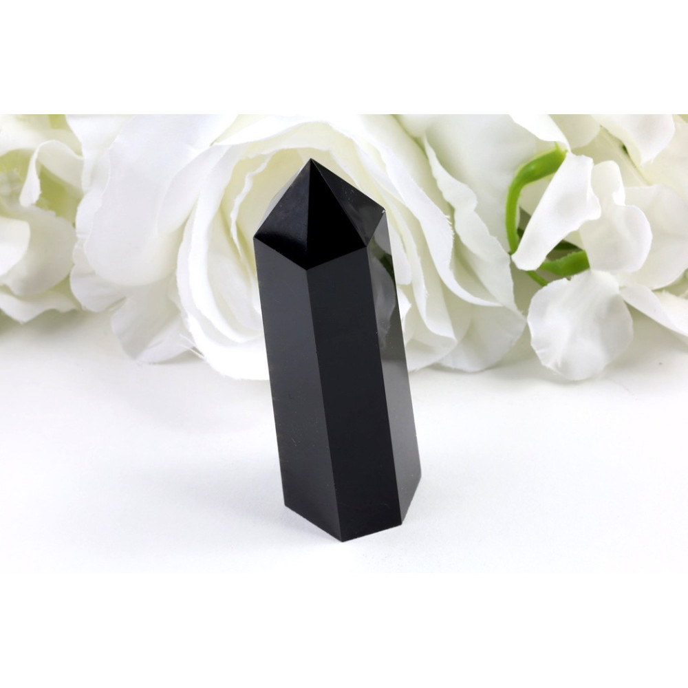 Elegantní obelisk z černého obsidiánu – ochranná energie vulkanického skla
