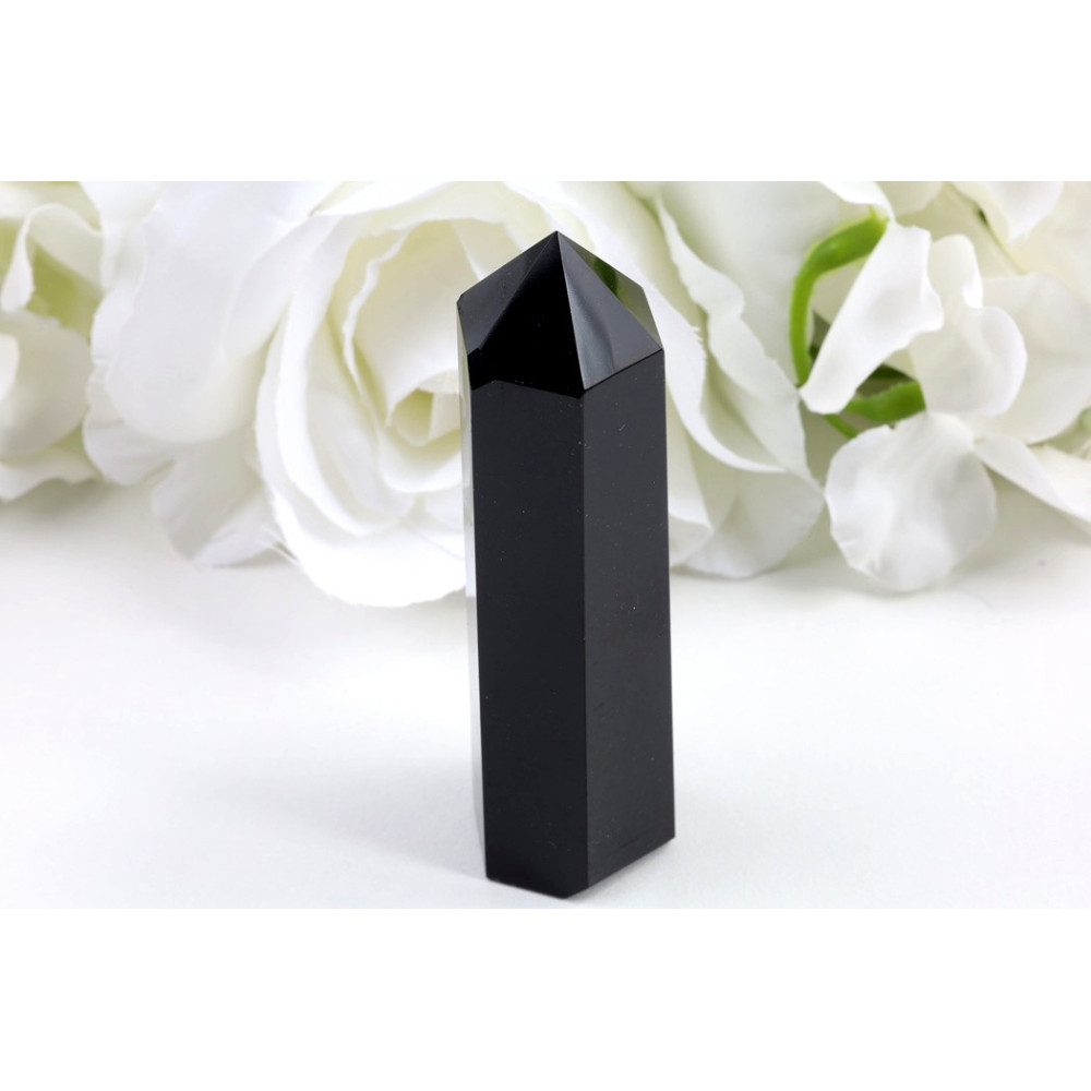 Elegantní černý obsidiánový obelisk - mystický klenot vulkanického původu