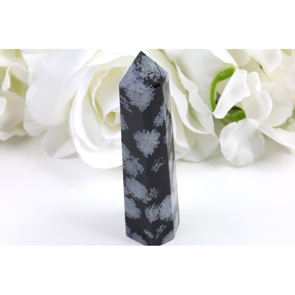 Tento obelisk z vločkového obsidiánu je originální kus s jedinečnou kresbou bílých vloček. Přineste si domů eleganci přírodního kamene a nechte se okouzlit jeho výjimečnou krásou. Ideální pro každého, kdo hledá spojení s přírodní energií a harmonií.