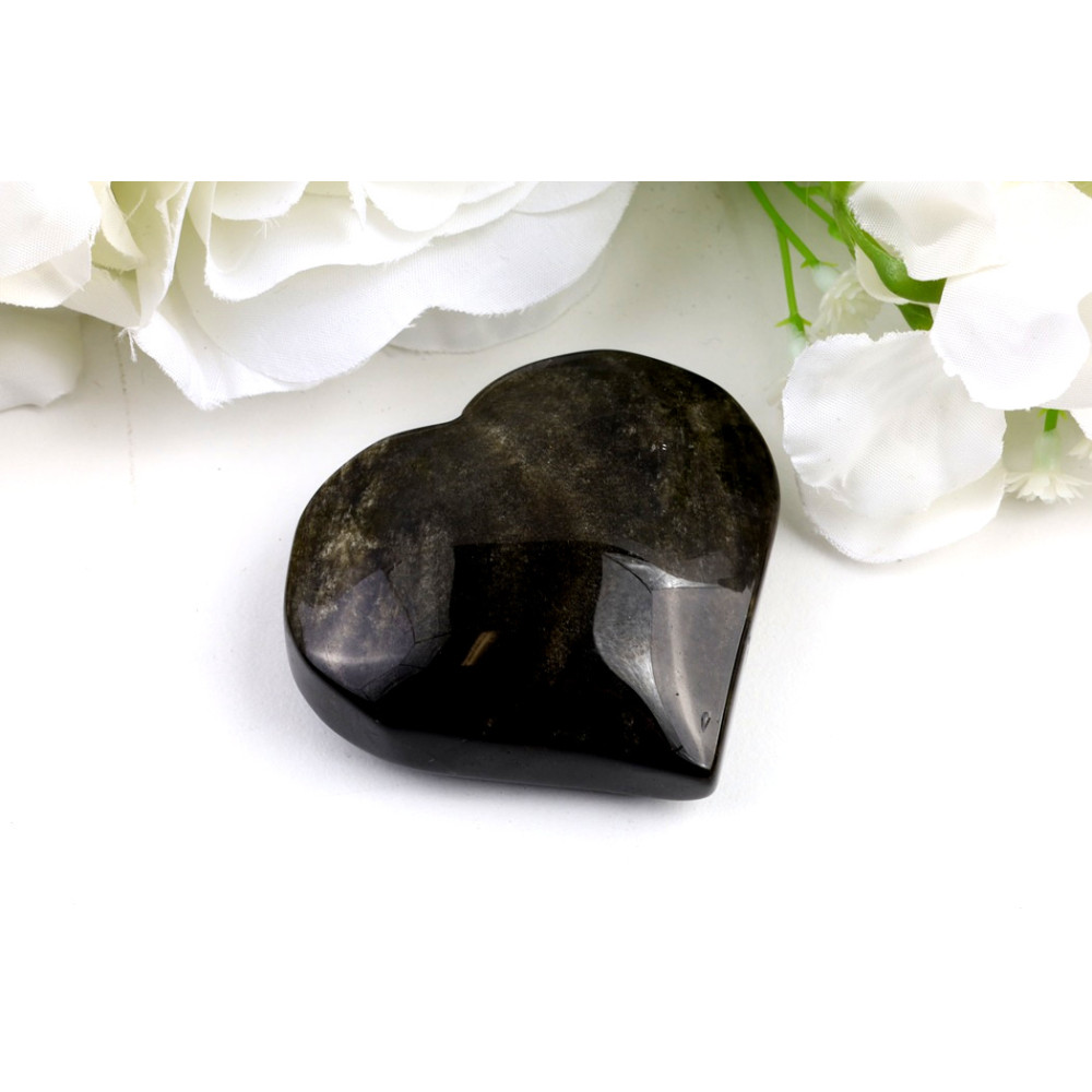 Srdce ze Zlatého obsidiánu je ideální jako elegantní dekorativní kámen do vašeho domova, kanceláře nebo meditačního prostoru, kde jeho třpytivé odlesky vytvoří uklidňující atmosféru. Je to také promyšlený a smysluplný dárek pro partnerku, maminku, nejlepší kamarádku nebo kolegyni, která ocení jeho krásu i symboliku. Se svými rozměry 59x55x20 mm se pohodlně vejde do dlaně, je o něco menší než hrací karta, a je tak ideální pro meditaci nebo jako hmatka pro chvíle zklidnění.