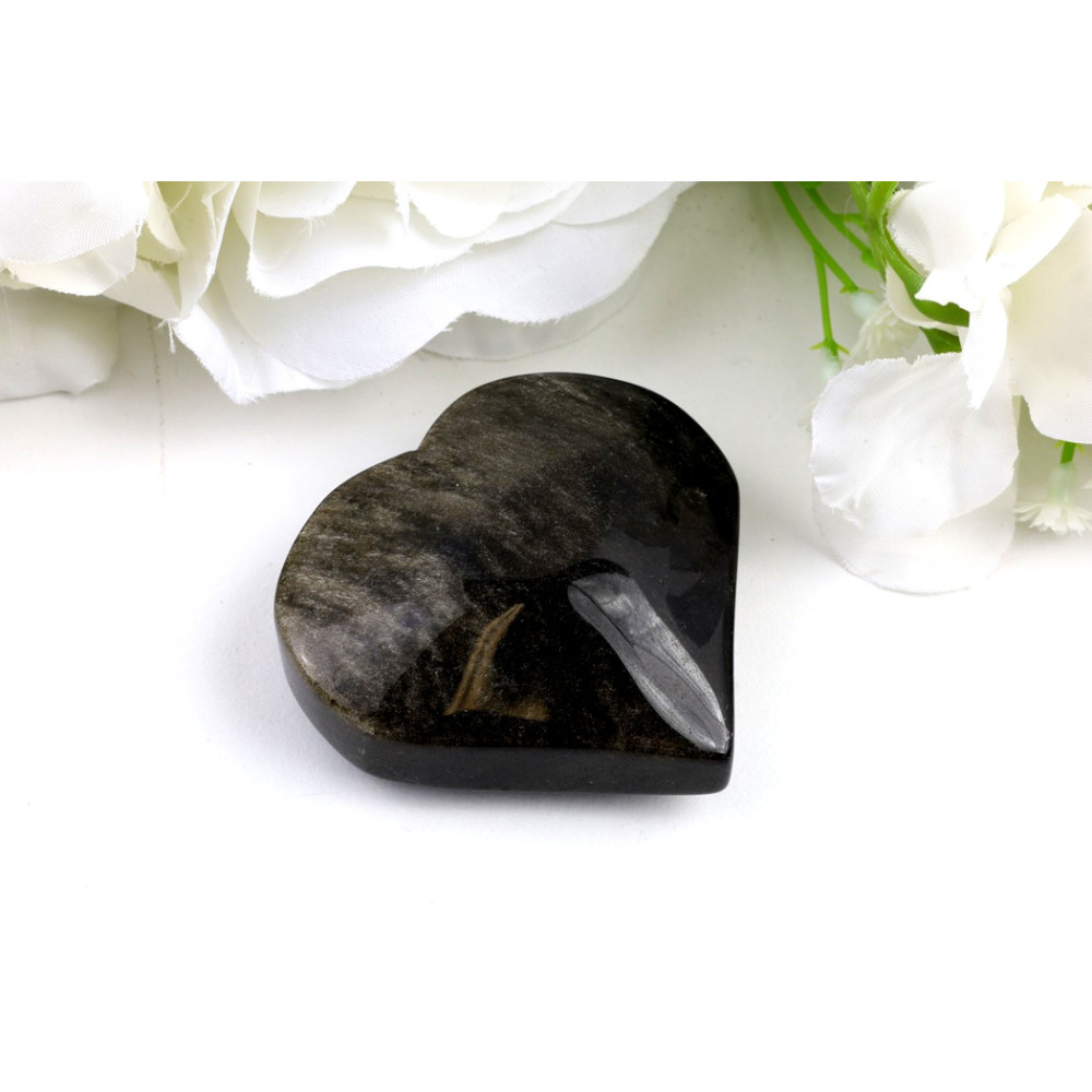 Představte si noční oblohu, do které se vpíjejí zlatavé paprsky úsvitu. Přesně tak působí toto nádherné, ručně leštěné srdce ze zlatého obsidiánu. Jeho povrch je temně černý, s vysokým leskem, který dokonale odráží světlo. V hluboké černé se mistrně vlní pásy a skvrny zlatavého lesku, který se mění s úhlem pohledu a vytváří okouzlující optický efekt. Tyto zlaté inkluze dodávají kameni mystický rozměr a činí z každého kusu originální a jedinečný drahokam, který doslova ožívá ve vašich rukou.