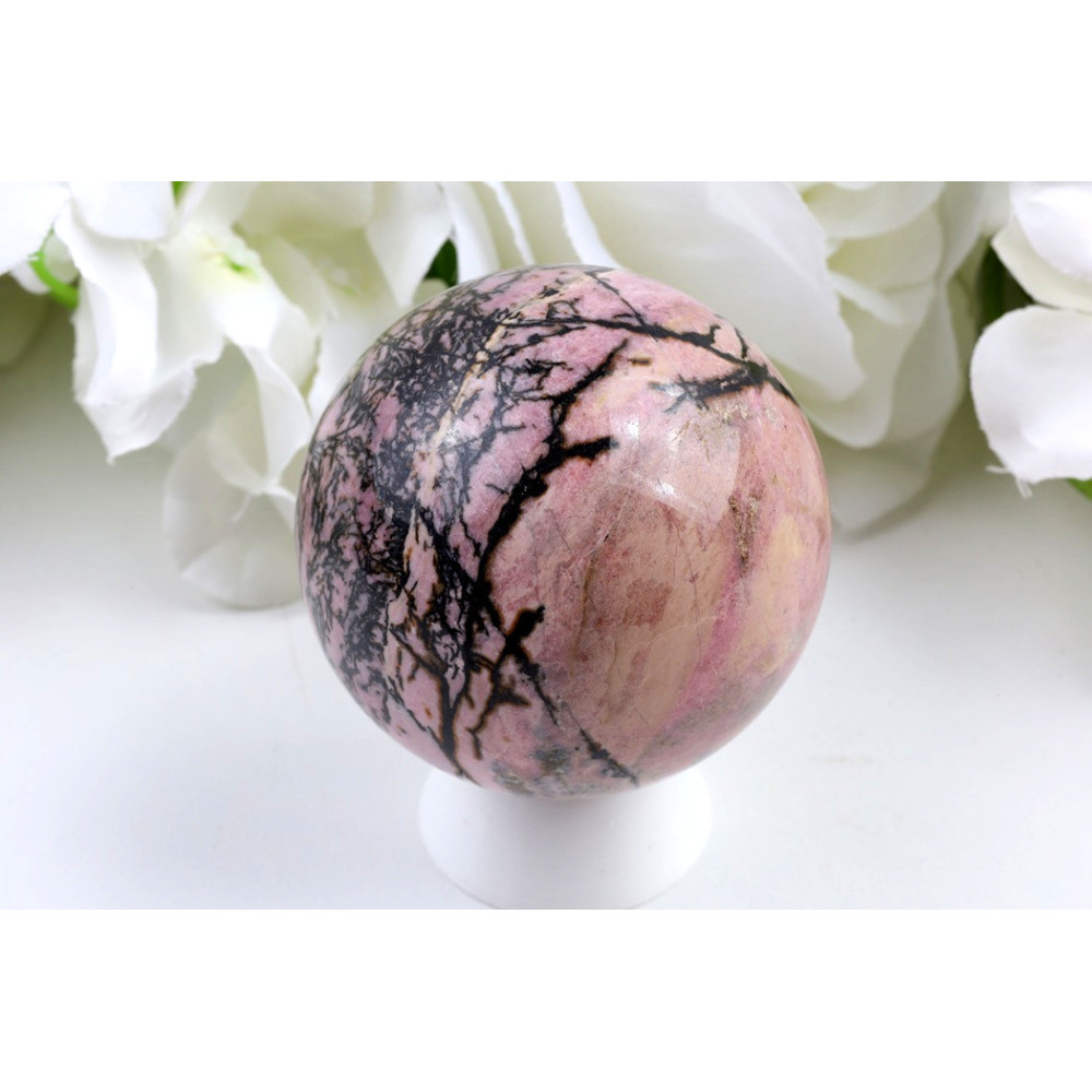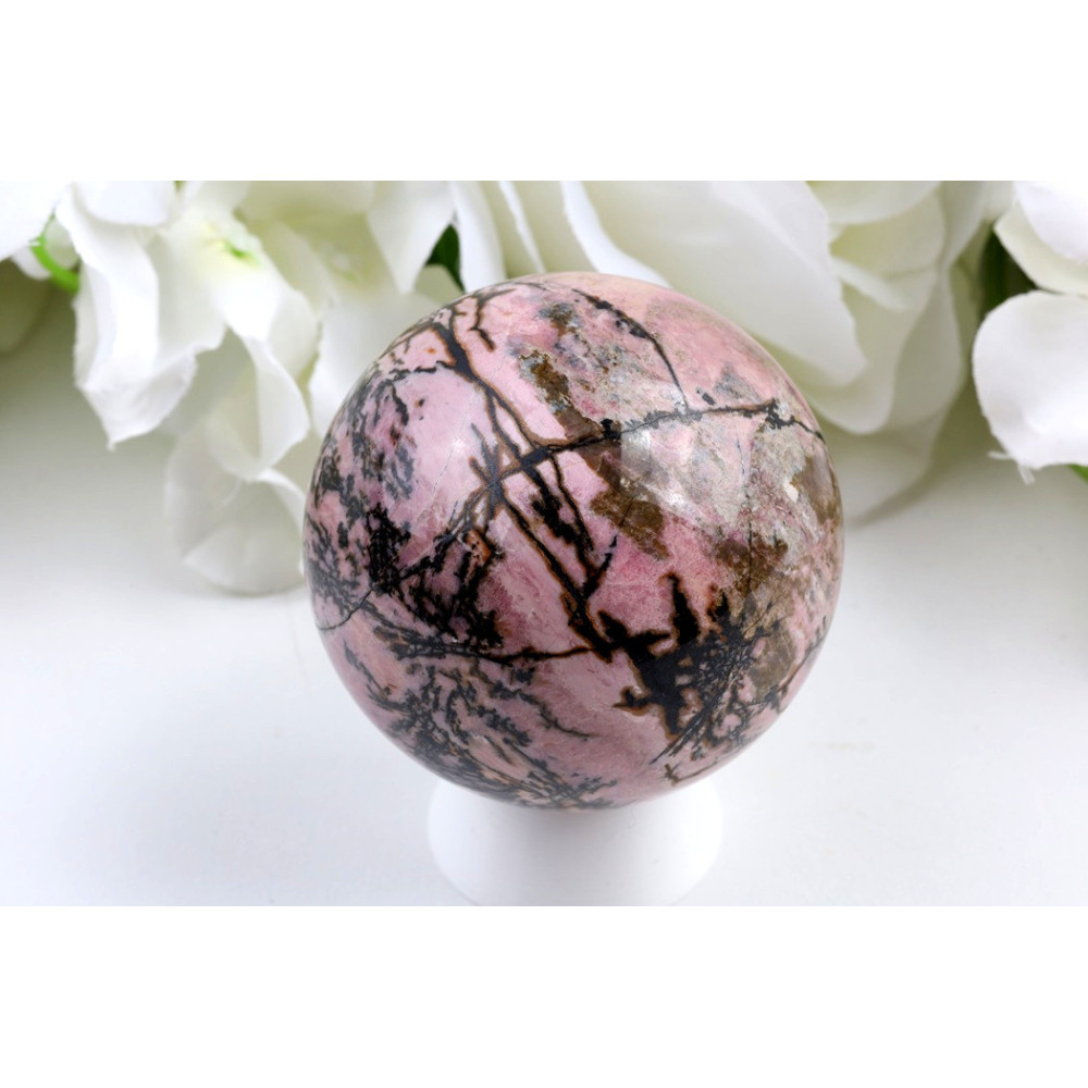 Tato koule rodonitu č. 489 je jedinečný kus s neopakovatelnou kresbou. Každý exemplář je originálem vytvořeným přírodou - získejte tento výjimečný kousek do své sbírky dříve, než jej někdo jiný objeví.