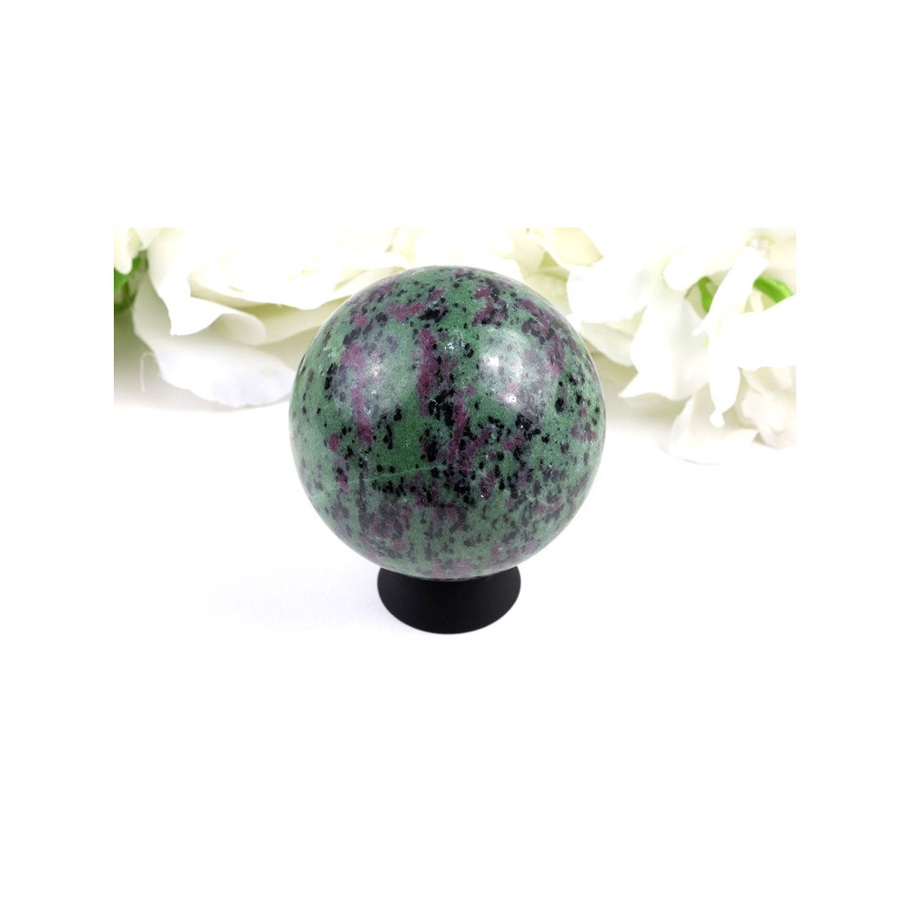 Tato jedinečná koule z rubínu v zoisitu je více než jen minerál - je to kus živé přírody, který v sobě nese příběh tisíců let geologického vývoje. K prodeji je určen přesně tento unikátní kus, který vidíte na fotografiích. Žádné dva kameny nejsou stejné, a tento exemplář vyniká svou vyváženou kompozicí barev, kvalitním leštěním a harmonickými proporcemi.