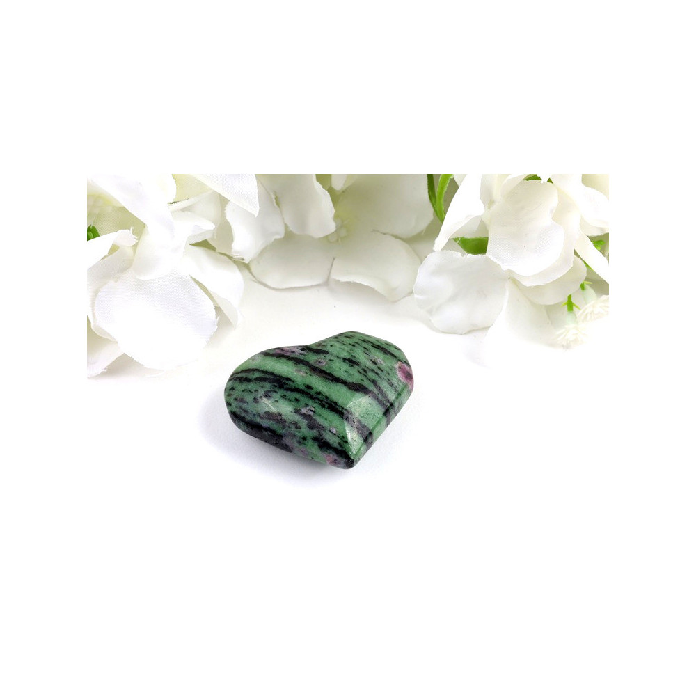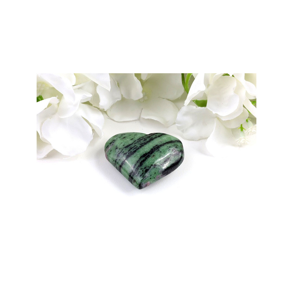 Toto krásné srdce je vybroušeno z prémiového rubínu v zoisitu pocházejícího z Brazílie. Produkt má dokonale vyhlazený povrch s vysokým leskem, který nádherně zvýrazňuje přírodní krásu tohoto kamene. Kamínek zaujme na první pohled fascinující kombinací barev - na tmavě zelené základně zoisitu se objevují výrazné růžové až červené plochy rubínu, které vytváří jedinečný přírodní kontrast. Celý povrch produktu je perfektně vyleštěný, takže kámen zrcadlově odráží světlo a jeho barvy působí ještě intenzivněji. Tvar srdce symbolizuje lásku, harmonii a emocionální vyrovnanost, což z tohoto kamene činí ideální dárek pro vás nebo vaše blízké.
