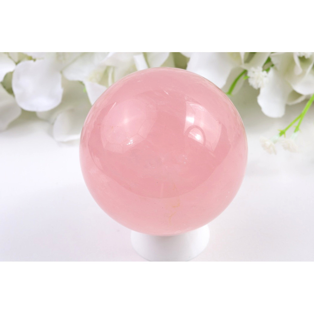 Tato nádherná koule z růženínu uchvátí svou jemnou růžovou barvou a jemnou průsvitností, která propouští světlo a vytváří kouzelnou atmosféru. Povrch je pečlivě vyleštěn do vysokého lesku, což zvýrazňuje přirozený hedvábný odstín kamene. Kresba je jemná a rovnoměrná, s charakteristickými mléčnými odlesky typickými pro kvalitní růženín z Brazílie. Díky svému dokonalému kulatému tvaru a impozantnímu průměru 66 mm je ideální pro meditaci či dekorativní účely.