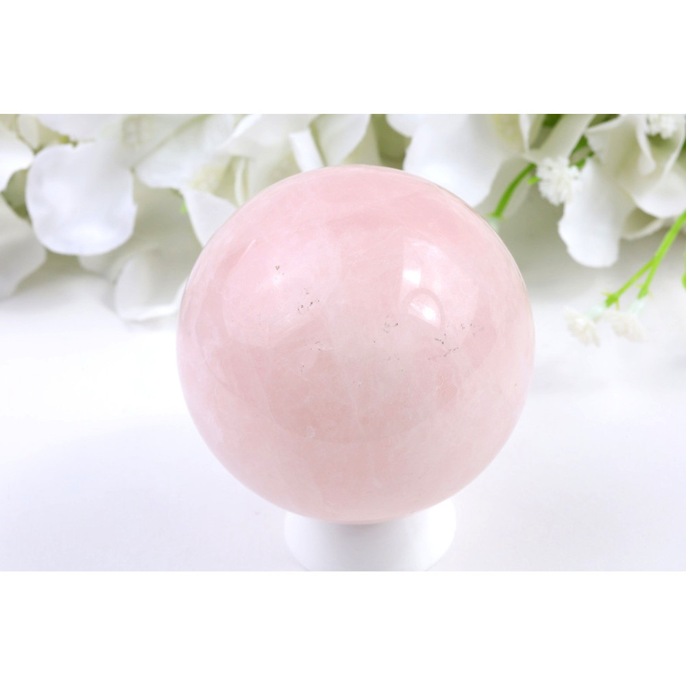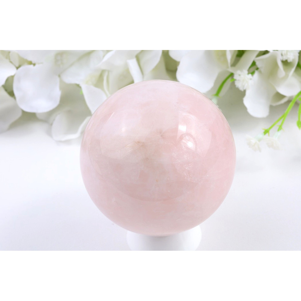 Tato elegantní koule z růženínu zaujme svou jemně růžovou barvou, která se táhne po celém povrchu v harmonickém tónu. Kámen byl precizně vyleštěn do vysokého lesku, díky čemuž jeho povrch krásně odráží světlo a vytváří hladký, zrcadlový efekt. Průsvitná struktura dodává kouli hloubku a jemnou éterickou kvalitu. Jedná se o pečlivě zpracovaný kus s dokonale kulatým tvarem, který je příjemný na dotek a působí uklidňujícím dojmem.