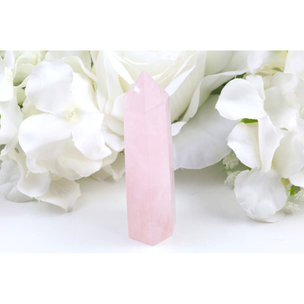 Ponořte se do jemných vibrací lásky a harmonie s tímto nádherným růženínovým obeliskem.