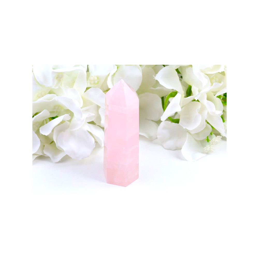 Tento nádherný růženínový obelisk vyniká svou jemnou růžovou barvou, která připomína ranní svítání. Kámen má téměř mléčný, lehce průsvitný charakter s jemnými barevnými přechody. Jeho povrch je pečlivě ručně leštěný do vysokého lesku, který nádherně odráží světlo a zvýrazňuje přirozené kouzlo minerálu. Obelisk je zakončen elegantní hexagonální špicí, která mu dodává vznešený a harmonický tvar. Rozměry 91×28×25 mm a hmotnost 98 g z něj činí ideální dekorativní i meditační kámen.