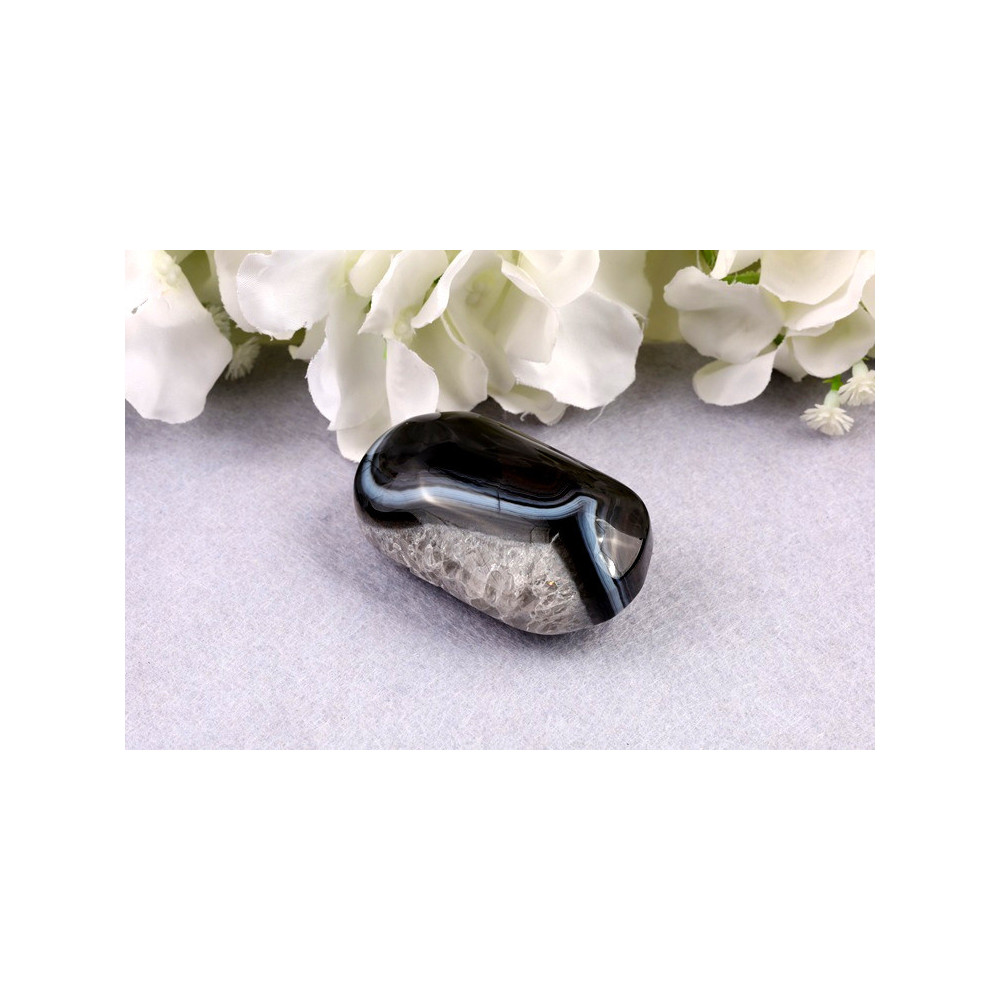 Elegantní hmatka z černého sardonyxu - pruhovaný klenot z Brazílie