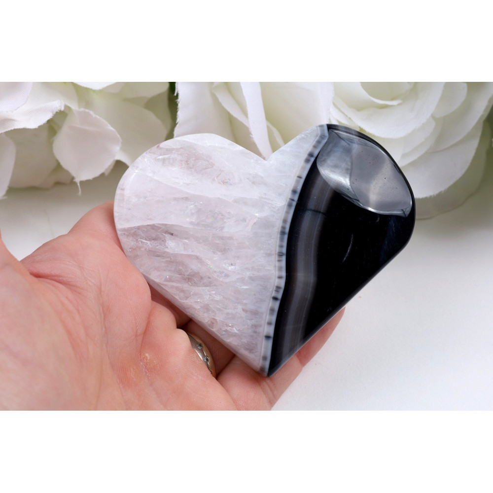 Toto srdce sardonyxu je jedinečný kus přírodního bohatství z Brazílie. Jeho elegantní vzhled s kontrastními černobílými kresbami a dokonalý lesk z něj činí výjimečný doplněk každé sbírky minerálů. Objednejte si tento neopakovatelný kousek ještě dnes a nechte se okouzlit jeho přirozenou krásou a harmonizující energií.