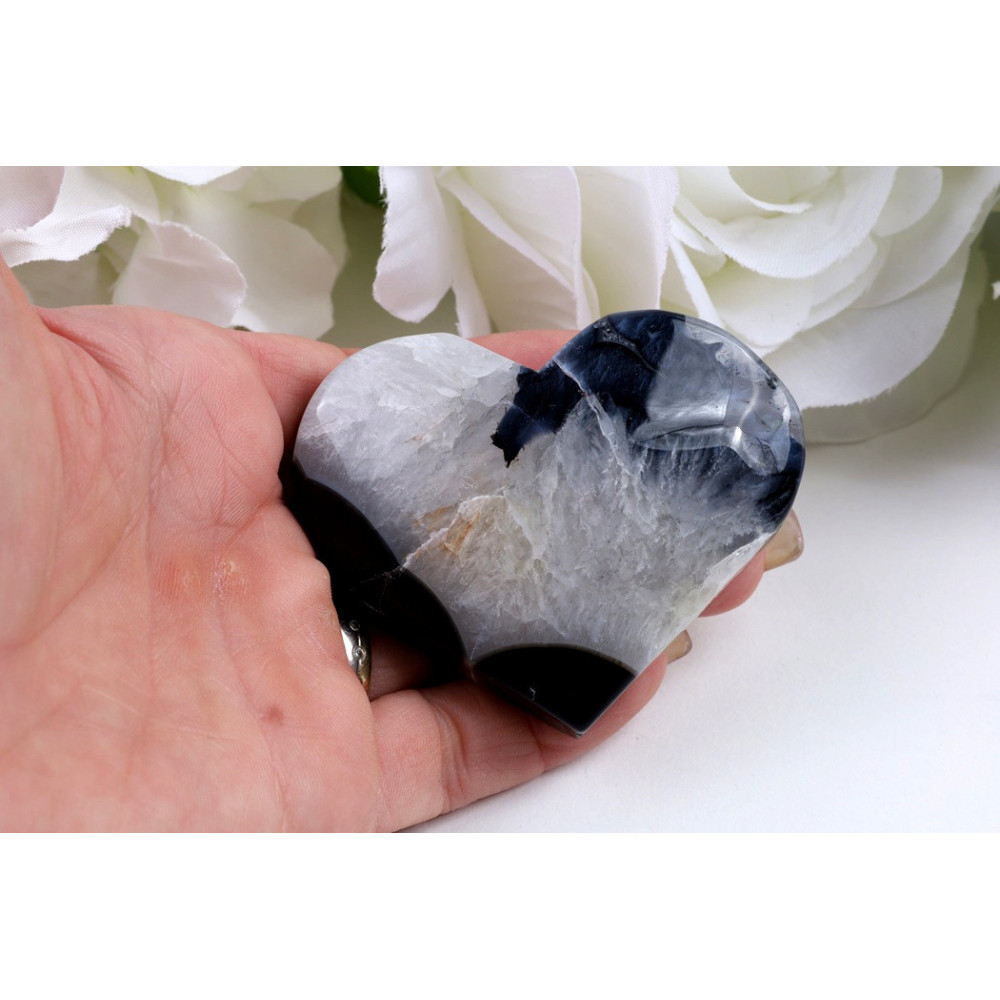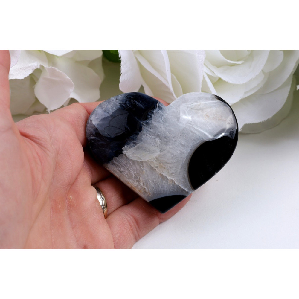 Tento precizně opracovaný kus sardonyxu vás okouzlí svou intenzivní černou barvou a dokonalým lesklým povrchem. Srdce má hladkou, zrcadlově lesklou úpravu, která krásně odráží světlo a vytváří elegantní vzhled. Kámen je kompaktní, neprůhledný a vykazuje rovnoměrnou černou strukturu bez viditelných vad. Symetrický tvar srdce je pečlivě vybroušen s precizním zpracováním všech hran a povrchů.