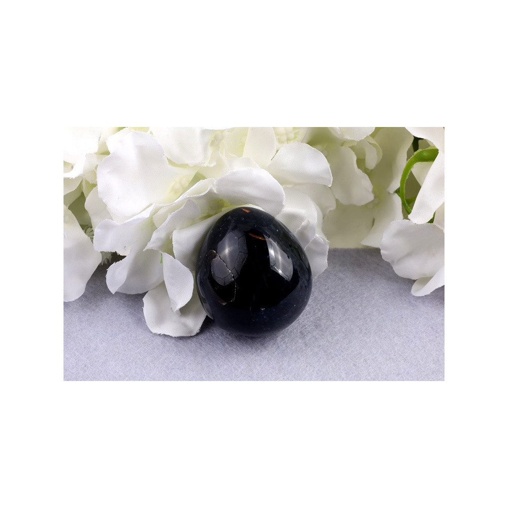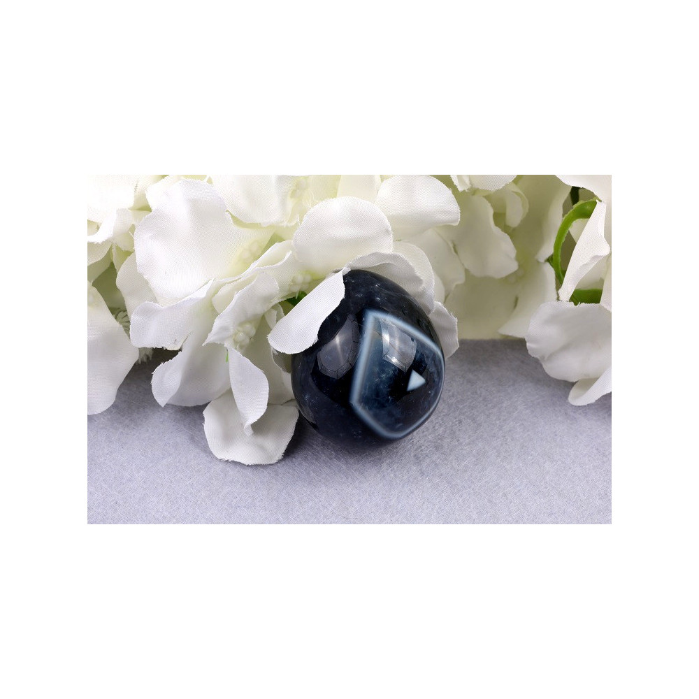 Toto vejce z černého sardonyxu zaujme na první pohled svou elegantní černou barvou s jemným leskem připomínajícím křišťál. Povrch kamene je pečlivě vybroušen do vysokého lesku, který podtrhuje přirozenou krásu minerálu a vytváří hladký, příjemný povrch. Vejce má kompaktní rozměry 45x40x38 mm a hmotnost 91 gramů, což z něj činí ideální kámen pro držení v ruce během meditace nebo jako dekorativní prvek na pracovním stole či domácím oltáři. Černý sardonyx může obsahovat jemné šedé pruhy nebo žilky, které dodávají každému kusu jedinečný charakter. Tvar vejce symbolizuje znovuzrození, nový začátek a nekonečný koloběh života, což činí tento kámen symbolicky velmi mocným.