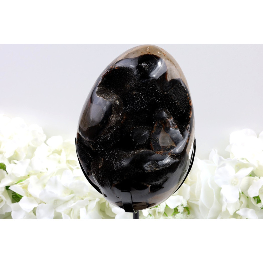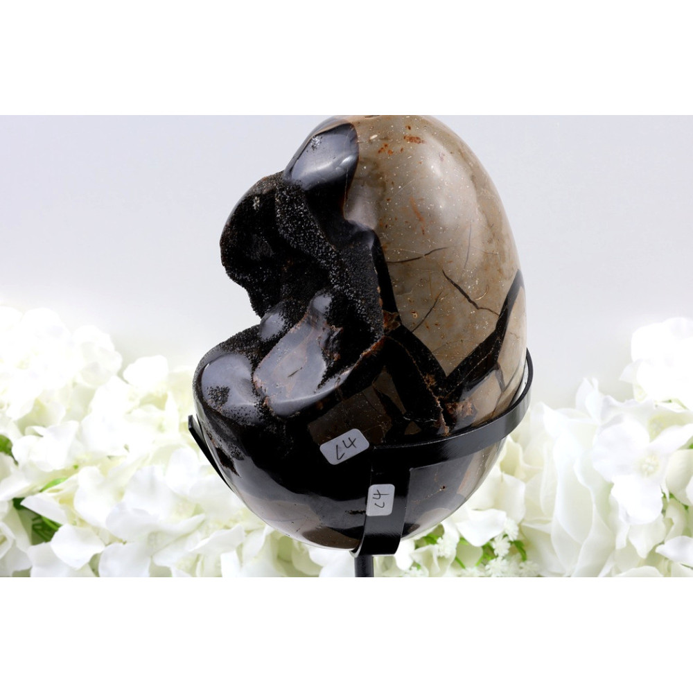 Toto monumentální dračí vejce septárie o hmotnosti přes 3 kilogramy je skutečnou mineralogickou vzácností, která zaujme každého milovníka nerostů. Díky své výjimečné velikosti a dokonalému leštění představuje jedinečnou příležitost získat impozantní klenot madagaskarské přírody. Včetně praktického stojánku je připraveno okamžitě ozdobit váš domov nebo sbírku. Neváhejte a staňte se majitelem tohoto neopakovatelného přírodního uměleckého díla.