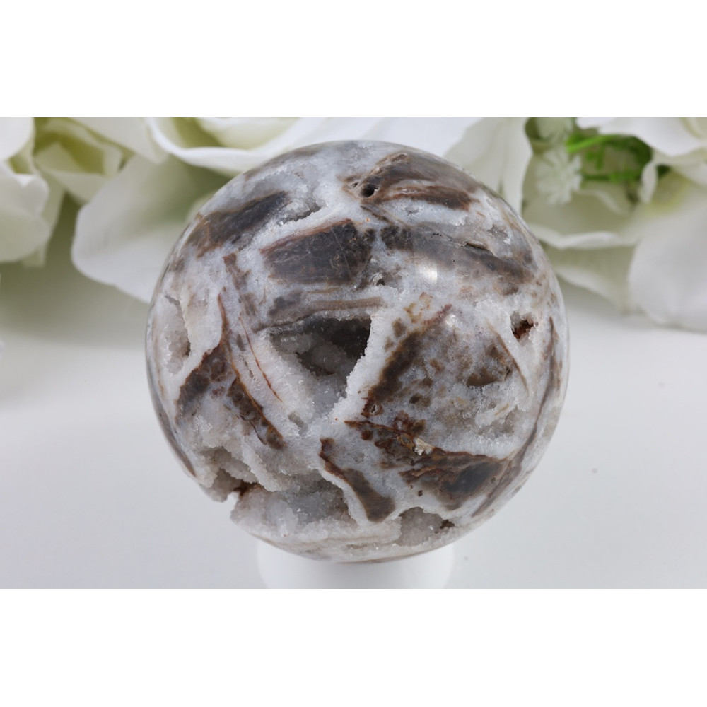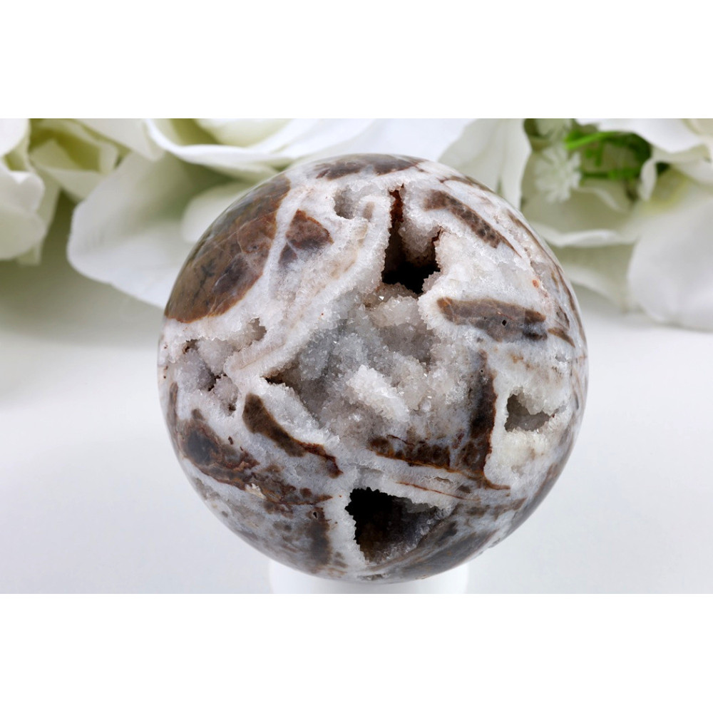 Sfaleritová koule je ideálním doplňkem do interiéru, kde působí jako dekorativní prvek i meditační pomůcka. Můžete ji využít při meditaci, kdy jejím držením v dlaních nebo soustředěným pozorováním můžete podpořit relaxaci a vnitřní klid. Koule se hodí do pracovního prostoru, kde může pomáhat udržovat soustředění a jasnost myšlení. Svou jedinečnou kresbou a kontrasten barvami přitahuje pozornost a stává se zajímavým prvkem v minerální sbírce nebo na dekoračním stolku.