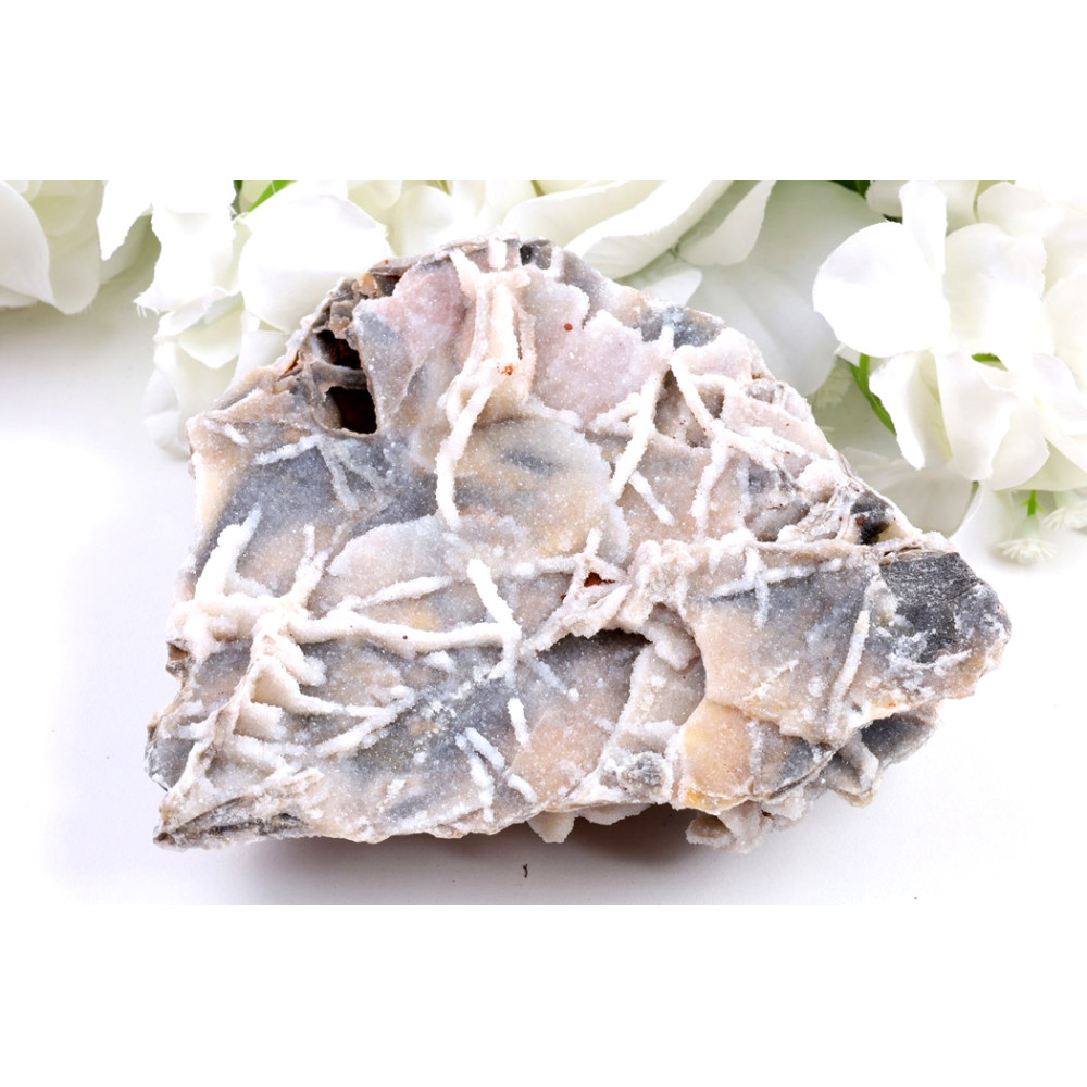 Irregulérní a organický tvar tohoto kusu z Brazílie mu propůjčuje nefalšovaný přírodní charakter. Tmavší inkluze a prolákliny dodávají hloubku a stínohru, zatímco světlejší krystalické výrůstky působí dojmem křehké, ale přesto robustní formace. Celý kámen vyzařuje zemitou sílu a surovou eleganci, která osloví každého milovníka minerálů hledajícího něco opravdu originálního.