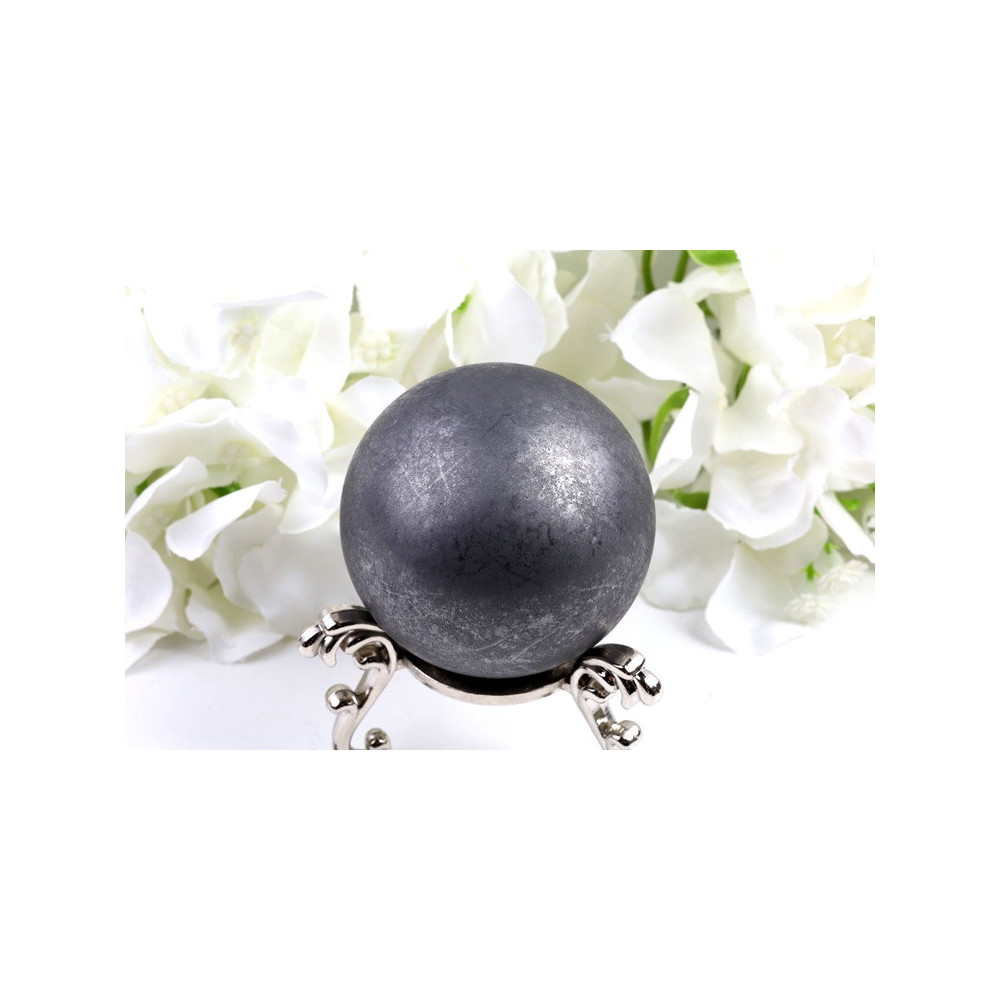 Představujeme vám jedinečnou neleštěnou kouli ze šungitu o průměru 58 mm, která vás okouzlí svou přirozenou krásou a silou. Tento výjimečný kus pochází z ruských nalezišť a zachovává si autentický, matný povrch, který odhaluje skutečnou podstatu tohoto vzácného minerálu.