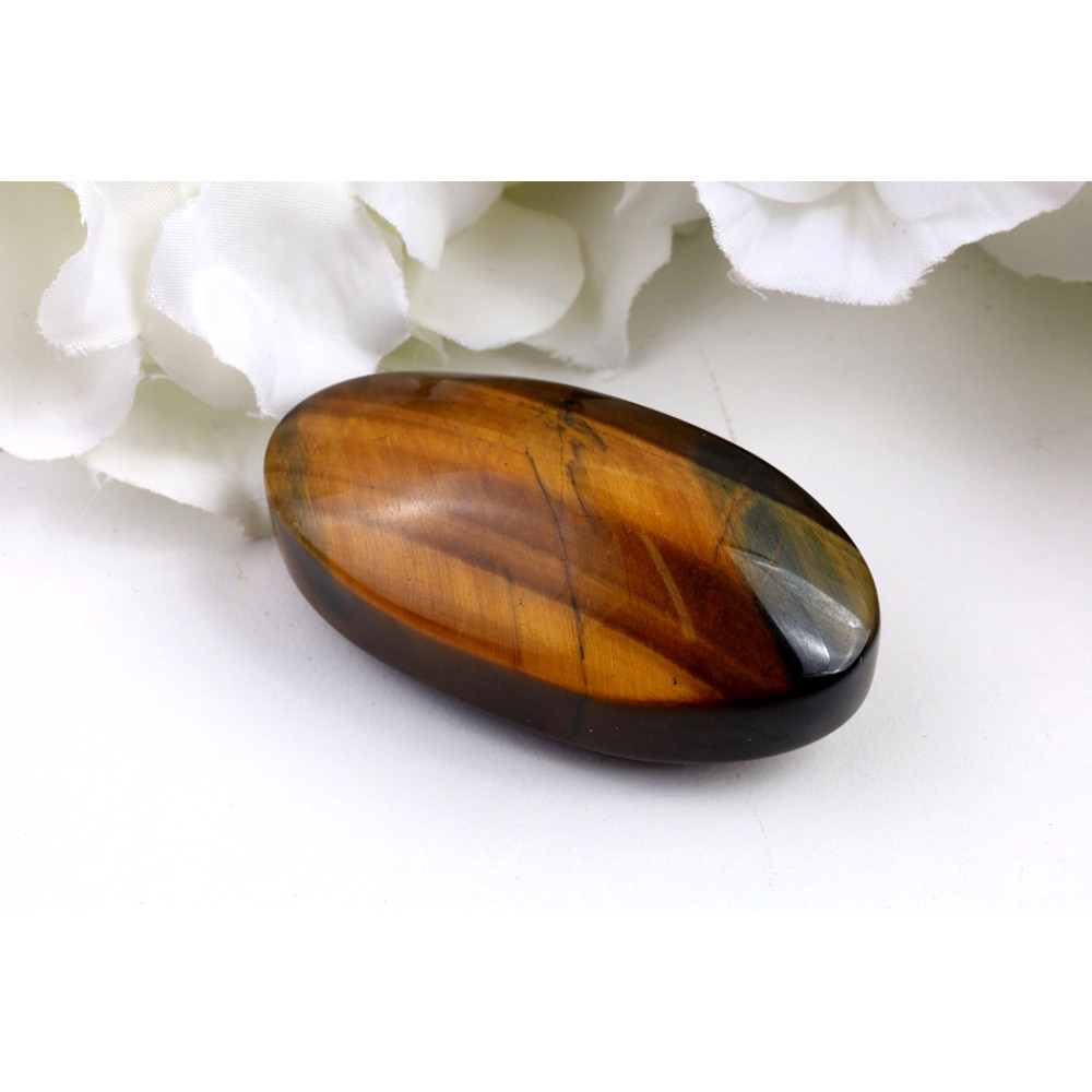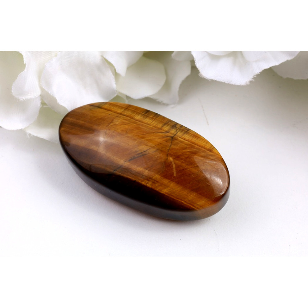 Tato fascinující hmatka z tygřího oka č.1584 představuje podmanivou směs hlubokých zlato-hnědých a sytě čokoládových odstínů, které se s každým pohybem plynule prolínají díky výraznému efektu kočičího oka (chatoyance). Na povrchu lze spatřit jemné, přirozené linky a inkluze, které dosvědčují jeho autentický původ a dodávají mu jedinečný charakter. Lesk je intenzivní, hladký a připomíná hedvábí, což umocňuje vizuální hloubku a hru světla.