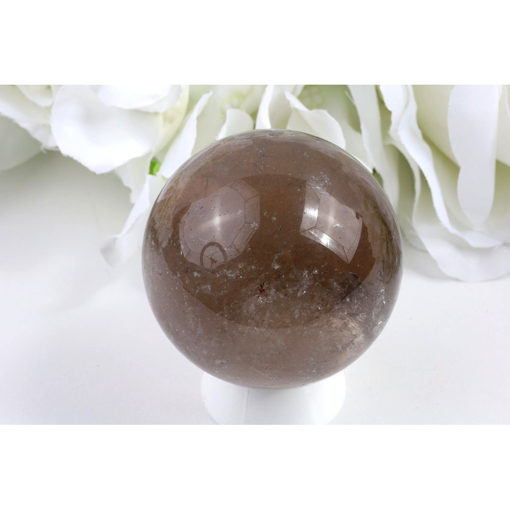 Tato elegantní koule záhnědy se vyznačuje jemným kouřově hnědým zbarvením, které vytváří hlubokou a uklidňující atmosféru. Kámen je poloprosvitný, což umožňuje světlu procházet a odhalovat přírodní inkluze a kouřové struktury ukryté uvnitř. Povrch je profesionálně vyleštěn do vysokého lesku, který zvýrazňuje přirozené vlastnosti tohoto kouřového křišťálu. Nerovnoměrné zbarvení s jemnými přechody od světlejších po tmavší oblasti vytváří jedinečnou kresbu, díky které je každá koule originálním kusem přírody. Viditelné jsou drobné inkluzní prvky, které dokládají autentický původ tohoto minerálu. Díky preciznímu broušení má koule dokonale kulatý tvar.
