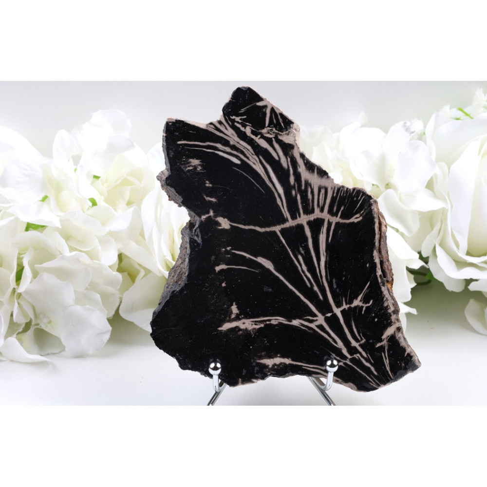 Tento unikátní plátek zkamenělého dřeva je vzácným kouskem přírody s historií dlouhou miliony let. Jeho výrazná kresba a dokonalé zpracování z něj činí skvělou volbu pro milovníky minerálů i ty, kdo hledají harmonizující prvek do svého prostoru. Nenechte si ujít příležitost vlastnit tento jedinečný kus přírody!